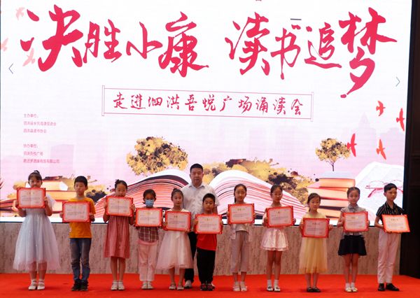 当日,泗洪县全民阅读促进会副会长兼秘书长、泗洪县全民阅读推广师、泗洪县读书协会会长邓颖龙向荣获泗洪县首届“朗读之星”称号的王纪朝、赵玺越、欧阳若曦、张铭芮、王近宇、董书含、席艺轩、臧汇贤、曹洪铭、刘远晴、石京卉等11名骨干儿童诵读者颁发了“师徒结对五年公益培养计划”证书。