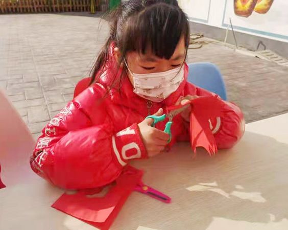 技术成熟后,到了最后的重头戏,志愿者拿出了方方正正的大红纸张,经过画、折、裁之后,把半成品交到了萌娃的手中。机灵的萌娃在志愿者的指导下,快速运转手中的小剪刀,经过剪、比照、修理,一幅幅精致的窗花儿就呈现在大家面前。看着自己的作品,小萌娃甭提有多高兴了。