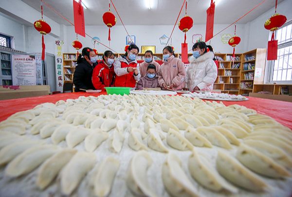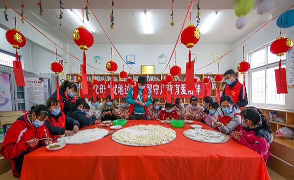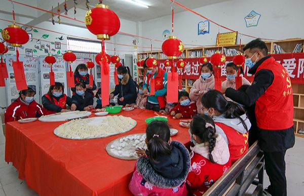 活动现场,志愿者带领孩子们包饺子、包汤圆,向他们讲述汤圆的来历和美好寓意。