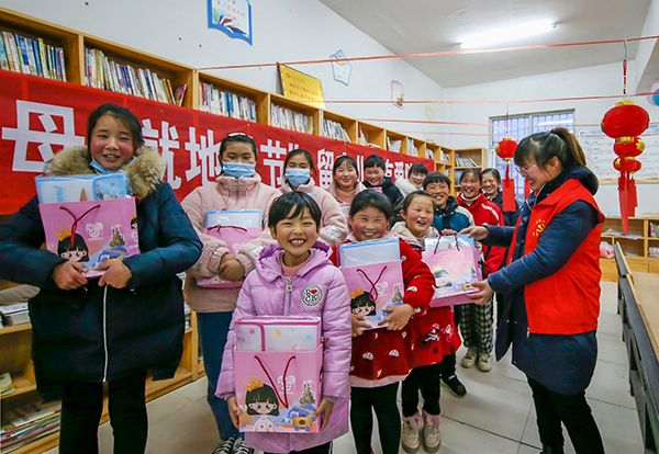 活动结束,志愿者还为孩子们送上学习用品、图书等新年礼包,勉励他们要认真学习、多读好书。