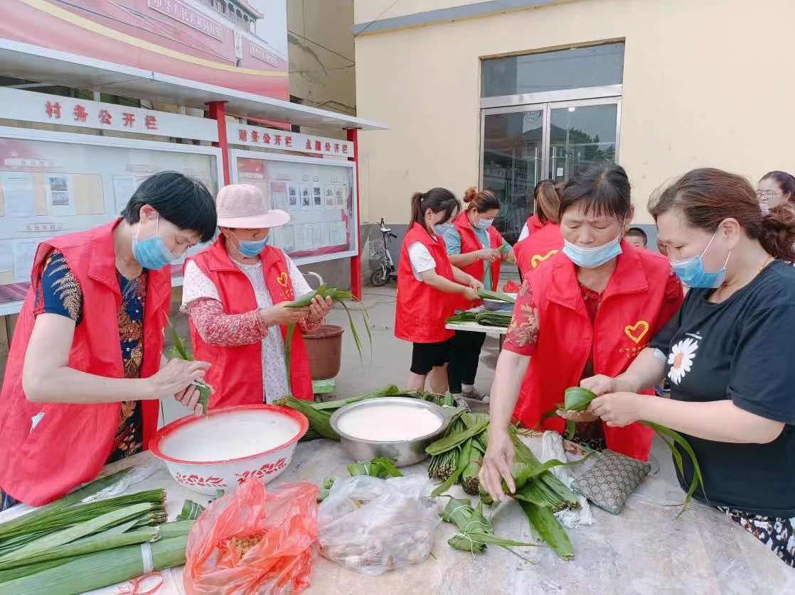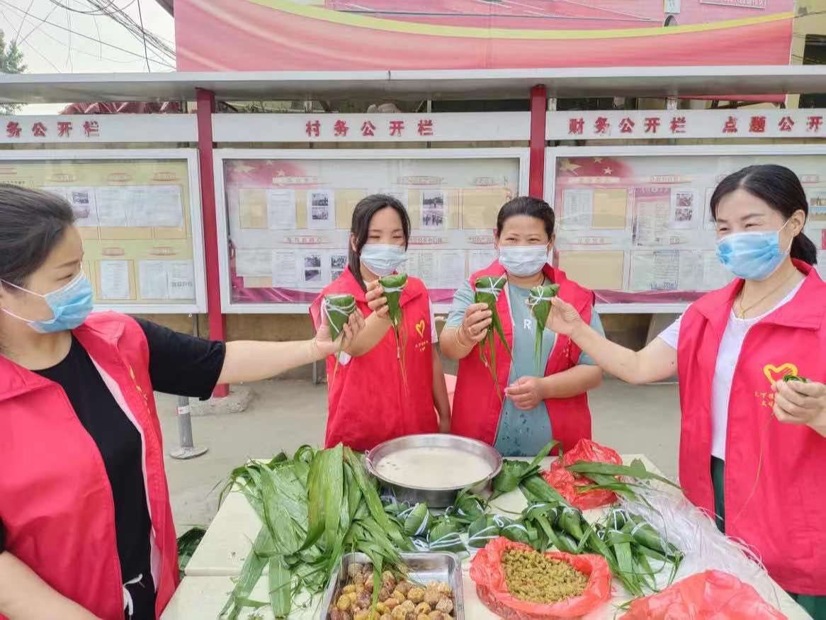 端午送温情,粽香暖人心。冯徐村妇女代表们进行包粽子比赛,用新鲜的粽叶,将糯米淘净,夹上甜甜的砂糖枣,包裹在粽叶中,一阵糯米粽香袭来。感受传统节日的魅力,庆祝端午节的到来。