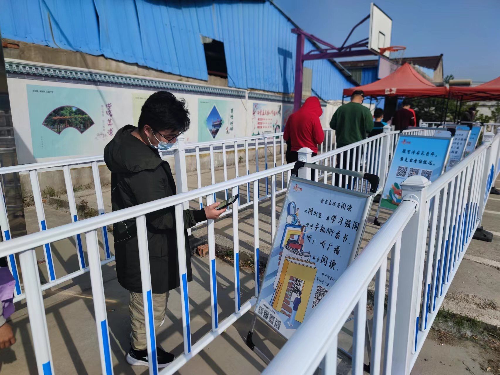 “您好,要是发现身边有疑似卖盗版书之类的情况,可以拨打扇子上面的举报电话,或者用微信扫一扫这个二维码,直接在手机上就能举报。”在泗洪县青阳街道桥南社区核酸采样点,志愿者在引导居民扫码阅读的同时,还发放了“扫黄打非”宣传小扇子。在排队之余,居民们有的享受免费的线上阅读资源,有的扫码观看“拒绝非法及盗版读物”小视频,原本枯燥无聊的等待时间也变得有趣起来。