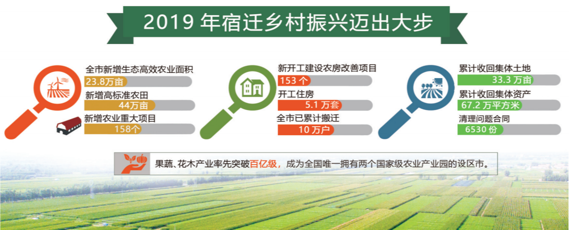 今年以来,宿迁以乡村振兴战略为统揽,坚持产业富民根本支撑、农房改善龙头引领等重点工作不动摇,致力推动农业全面升级、农村全面进步、农民全面发展,乡村振兴实现新突破,迈上新台阶。