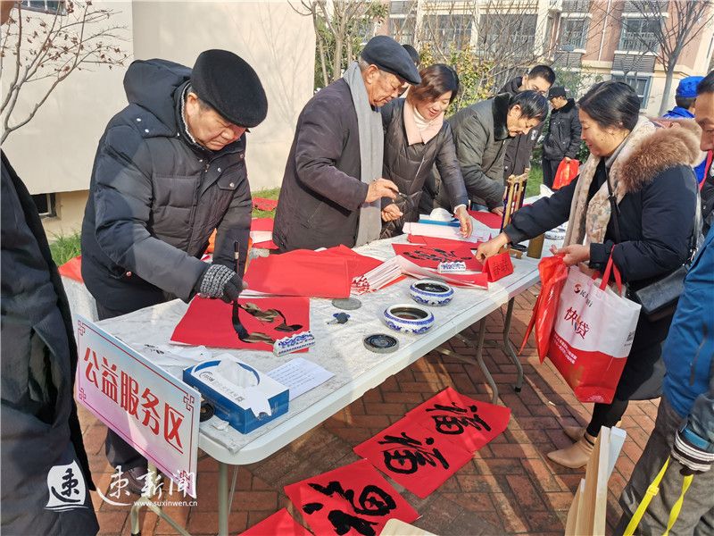 在体验区,宿迁市蓝天救援队将“消防逃生气垫”搬到了现场,通过现场模拟“火海逃生”,让大家学会一些基本的逃生技巧。社区书画家志愿者们现场挥毫泼墨给社区居民撰写新春对联,送去新年满满祝福。书画家周辉告诉记者,这样的志愿活动拉近了邻里之间的距离,非常有意义。