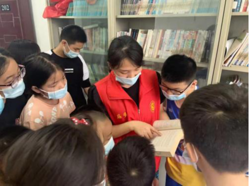 随后,志愿者仲帆云同志向学生们讲述少年英雄潘冬子、小侦查人张嘎等英雄事迹,分享阅读体会。接着,学生代表王思语小朋友向大家汇报了自己的读书心得。