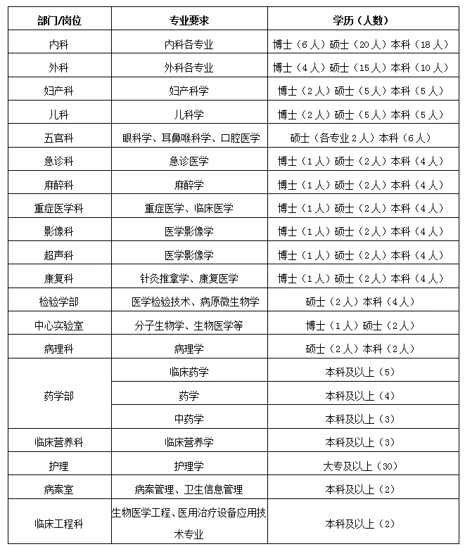 为满足创建三级甲等医院的发展需要,加强医院人才队伍建设,谋求更大发展,现诚邀有志之士加盟!