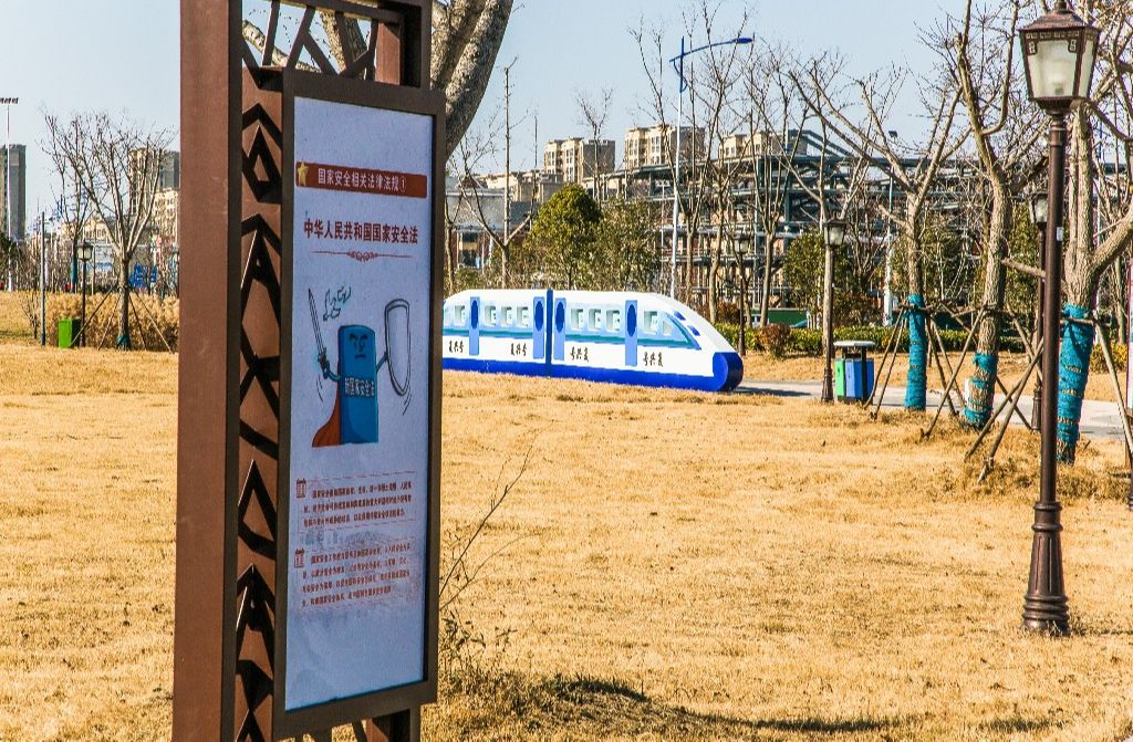 该公园在原有绿化景观等空间资源的基础上,添加复兴号“翻翻乐”、国安知识“大转盘”等多处与总体国家安全观概念密切相关的特色文化展牌以及特色造型元素,将国家安全知识集中融入到公园整体环境中,形成国家安全法律法规学习步道、案例常识普及步道、国安广场“两道一广场”阵地格局,在全市率先打造成为集城市景观、休闲娱乐、特色教育等功能于一体的国家安全教育基地,全面营造人人维护国家安全的浓厚社会氛围,提升市民的国家安全意识。