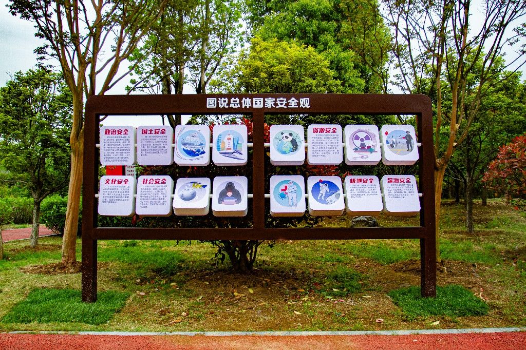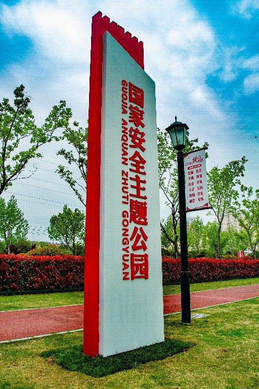 泗洪县国家安全主题公园位于淮北抗日民主根据地纪念公园内,占地70余亩,于2022年4月12日建成对外开放。主题公园以“融入环境、寓教于乐”为设计理念,采用“一轴两翼”整体布局,“一轴”即为国家安全钢铁长城,“两翼”即为树立总体国家安全意识、塑造总体国家安全,通过国家安全概念密切的元素造型,多点位布局总体国家安全观五对关系、十六种安全、十个坚持、维护国家安全的权利和义务等景观小品,将落实总体国家安全观贯穿于公园结构、设施建设、景观布局之中,突出宣传重点、彰显主题内涵,让广大居民在休闲娱乐、游览锻炼的过程中潜移默化地接受国家安全知识教育。同时,主题公园毗邻淮北抗日民主根据地纪念馆、泗洪县烈士陵园,共同构成“红色教育+国家安全教育”矩阵,正逐渐成为全县广大人民群众学习国家安全知识的打卡新地标。