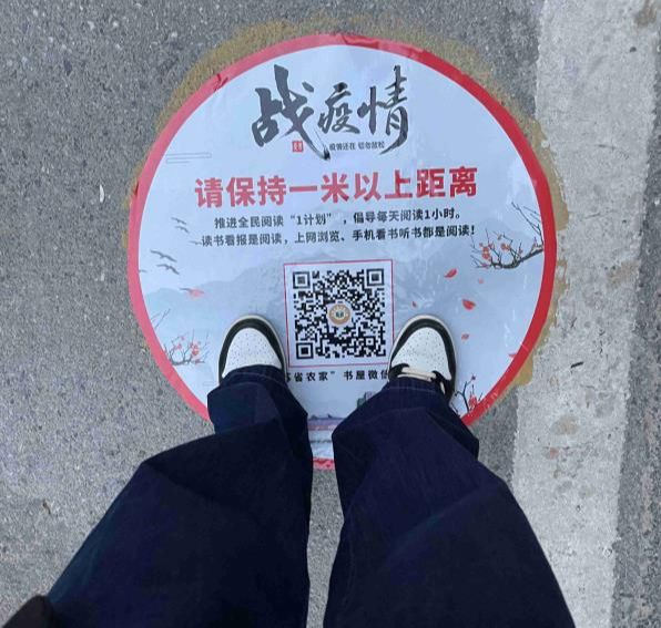 可以看到,原本简单的“一米线”,融入了古诗词、全民阅读“1计划”主题宣传等内容,颇有书香人文气息,既能提醒居民排队时保持安全距离,又方便居民识读,家长带着儿童一起排队时也可以增进亲子互动,兼具了实用性、知识性、趣味性。“一边排队,一边学习古诗词,不会觉得时间过得慢了。这样的 ‘一米线’,我们都忍不住想低头看,也让我们城市的书香氛围更浓。”家住御水佳园小区的纪勇庆说。