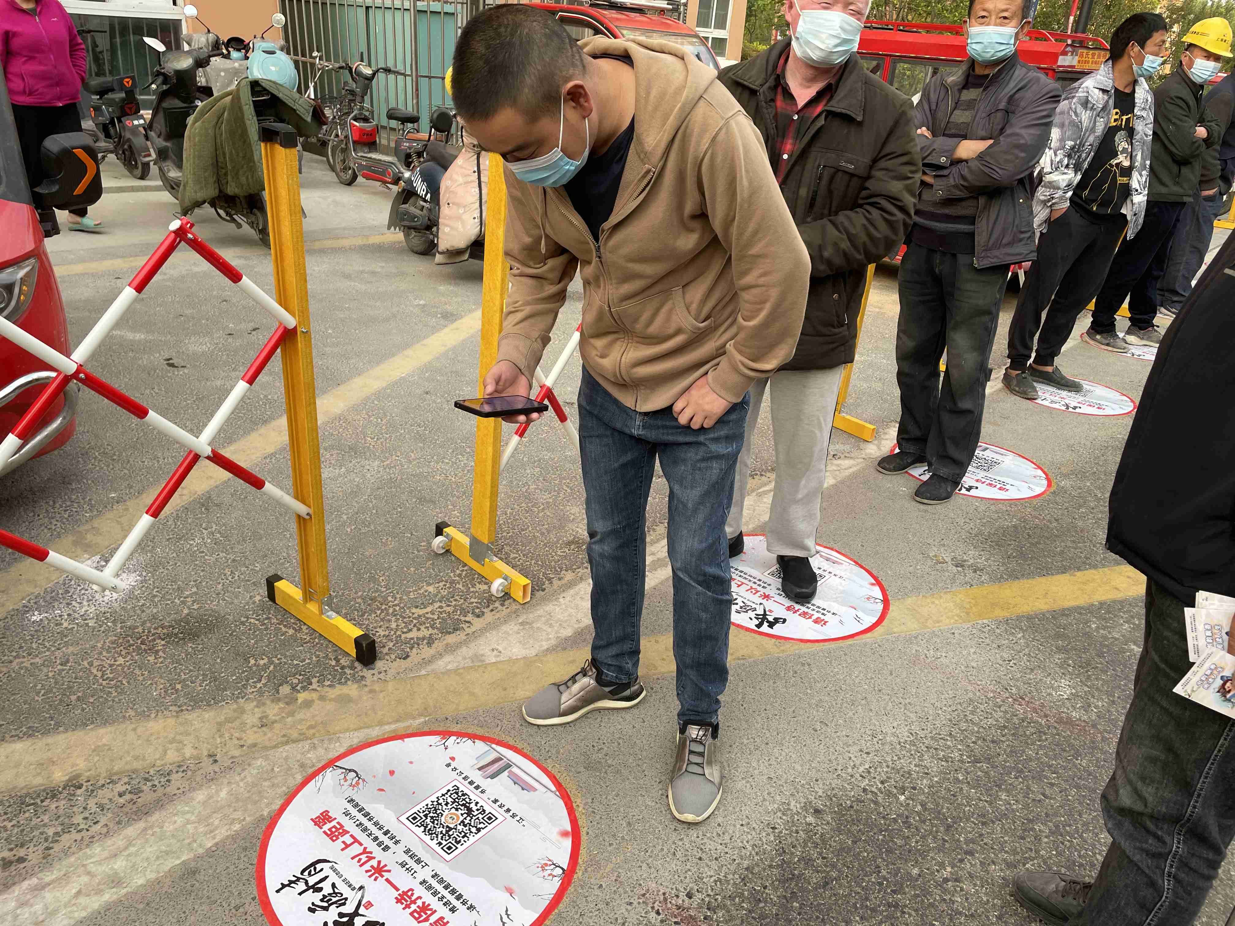 5月15日上午,宿城区项里街道双河社区开展大规模核酸检测工作,不少居民发现核酸采样点的“一米线”标识换了一副模样,原来该社区在原有标识的基础上,补充设计了呼吁参与全民阅读的活动的元素,前来做核酸的居民在排队之余,纷纷关注起来,低头仔细查看内容。