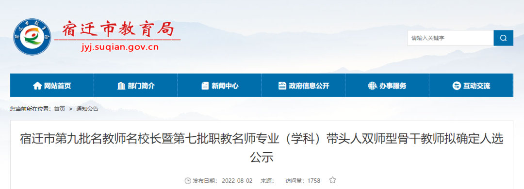 宿迁市教育局网站公示了
