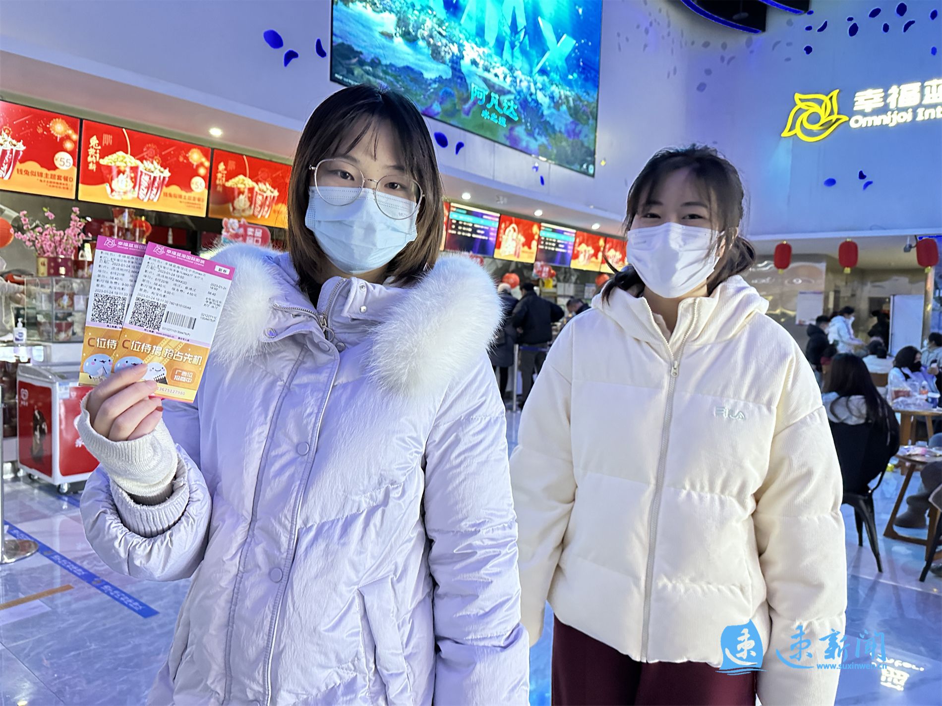 “我们看的是《流浪地球2》。”市民王女士与好友一边向记者展示影票,一边说,她们了解到《流浪地球2》评分较高,值得一看。作为资深影迷,市民高先生表示,他将把春节档的几部电影全“刷”完。
