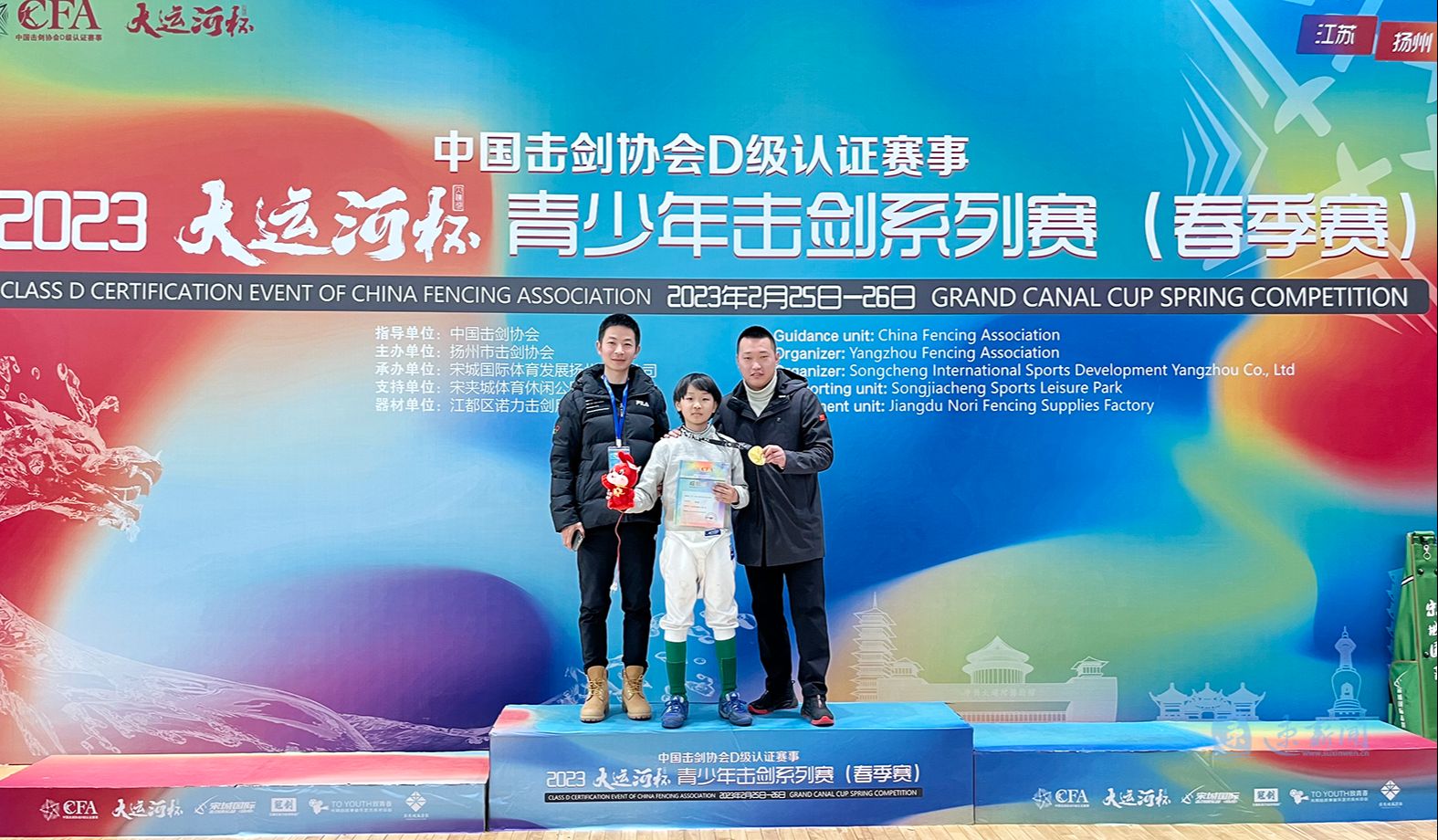 (速新闻记者 周妮)2月25日至2月26日,2023“大运河”杯青少年击剑系列赛(春季赛)在扬州举办,来自全国各地的800余名青少年击剑爱好者参与赛事。记者了解到,在该项赛事中,宿迁市击剑队运动员杨子懿获得U12男子佩剑个人金牌,由杨子懿、刘首尔、孙搏远、韩硕组成的四人团体,获得U12男子佩剑团体金牌。