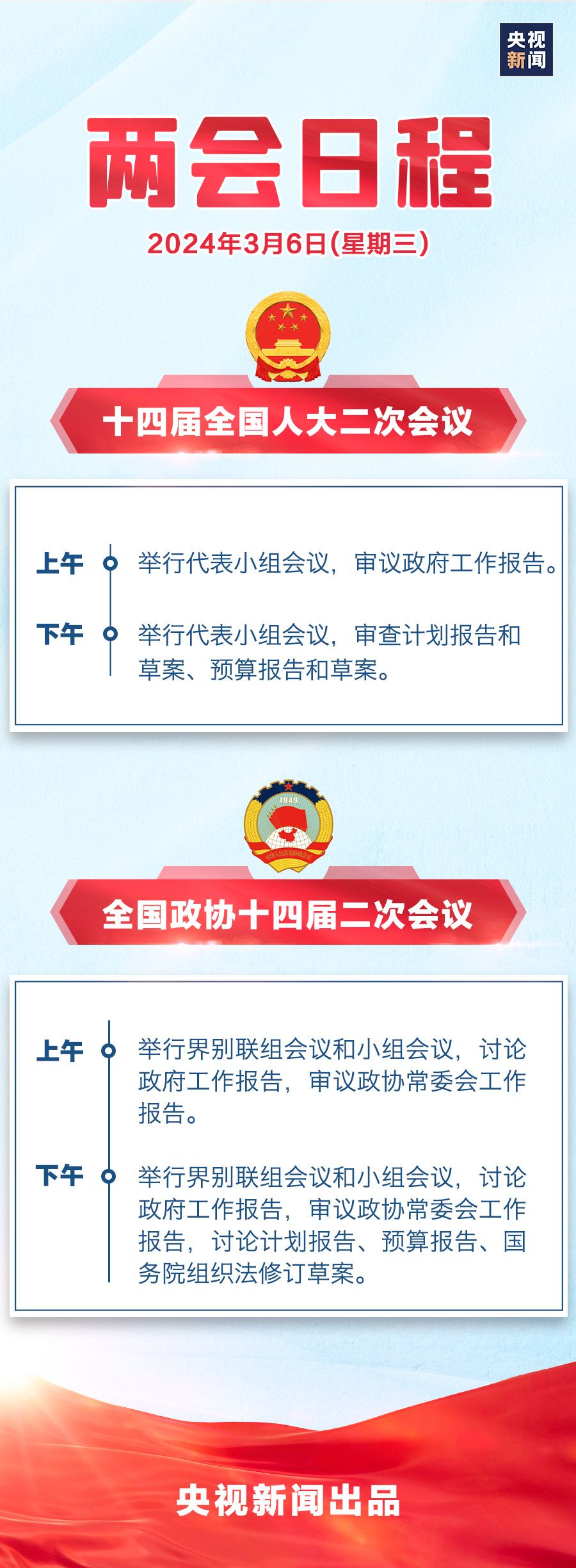 两会日程预告丨3月6日:审议和讨论政府工作报告 审查计划报告和预算报告