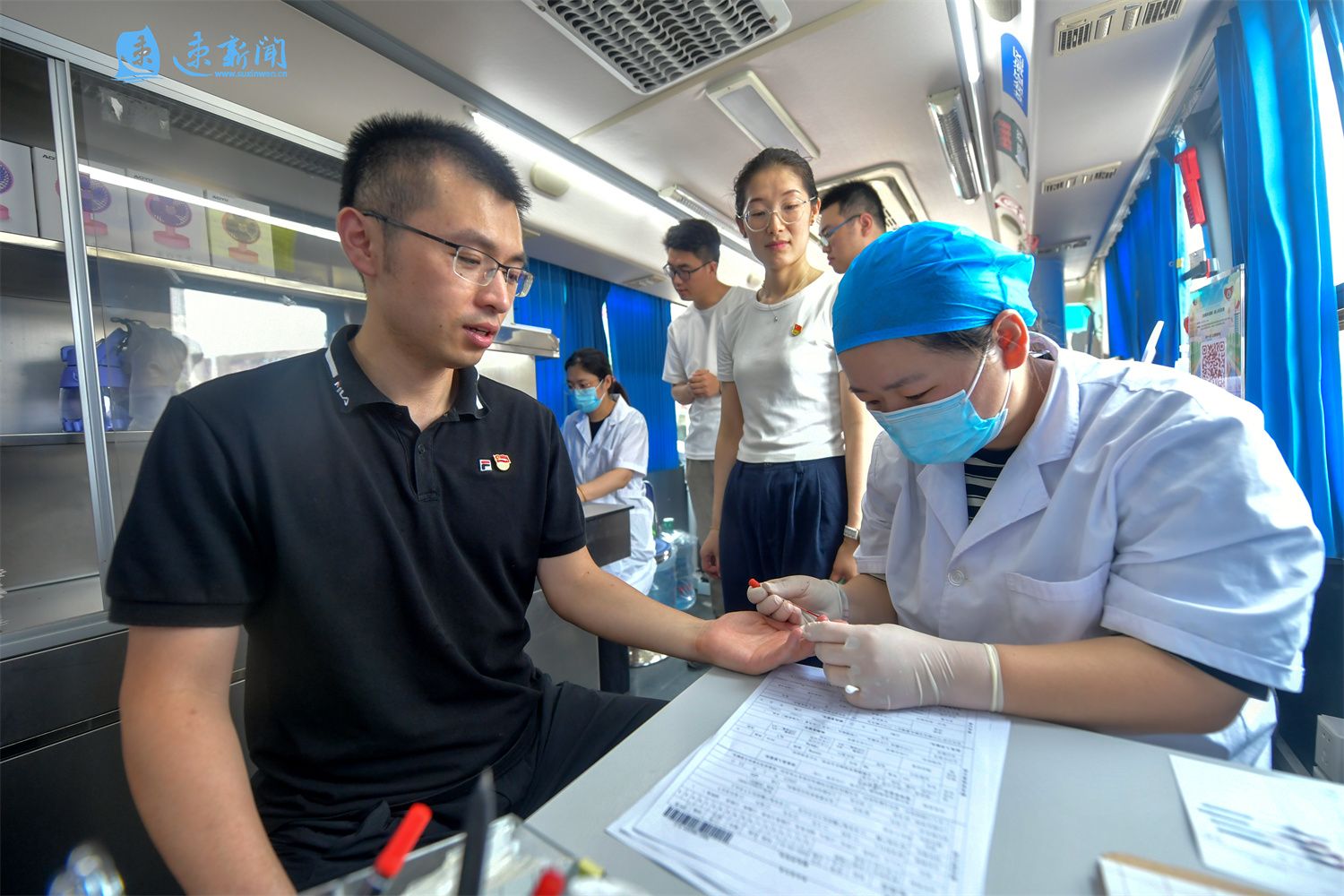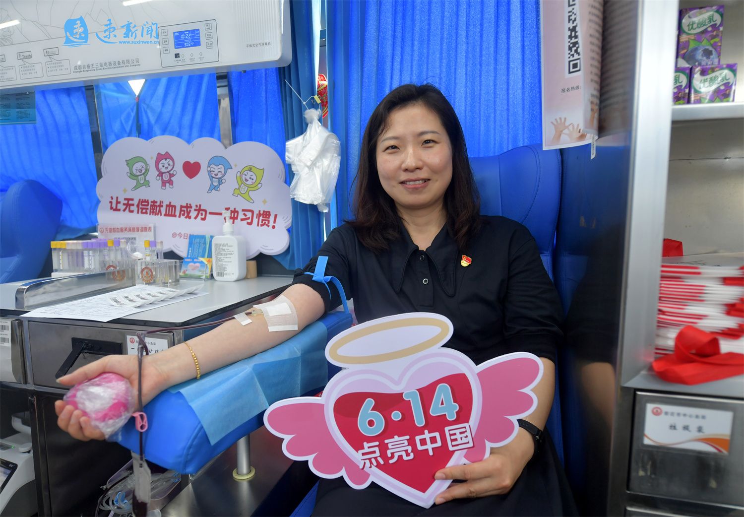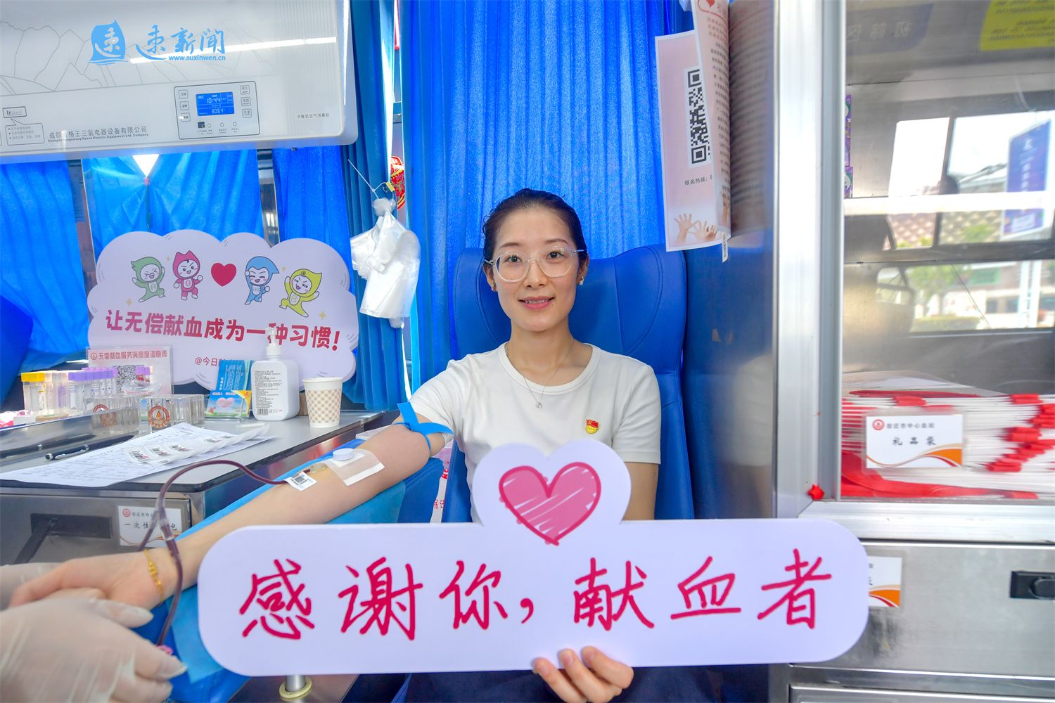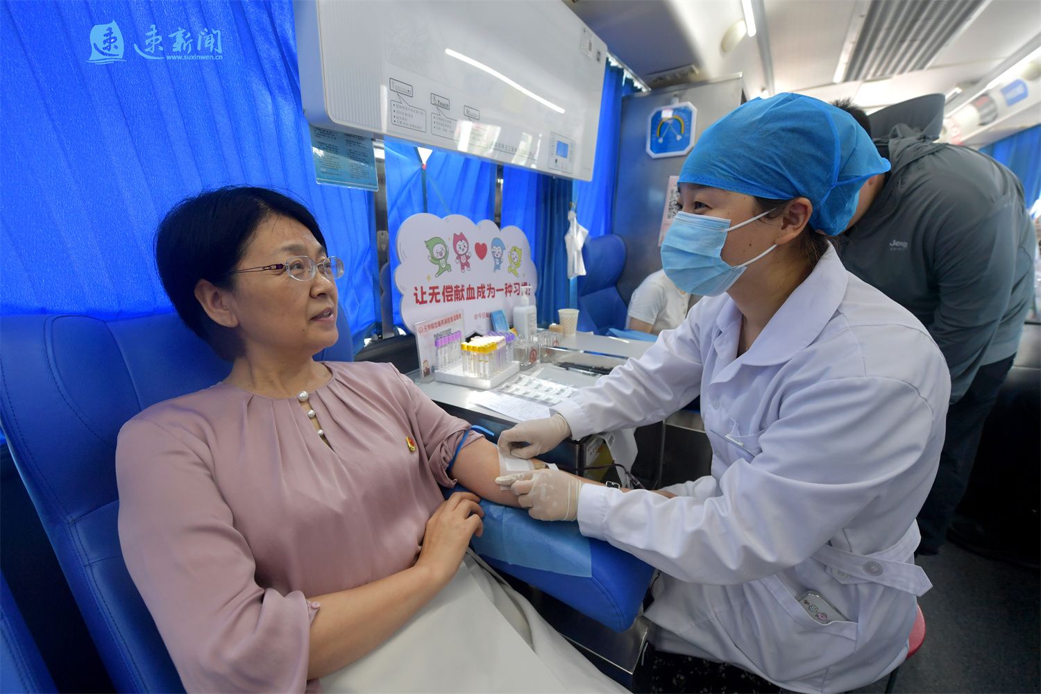 6月14日是世界献血者日,宿迁市民正在献血车内献血。据悉,2024年1至5月,宿迁市采血量达到5.2吨。无偿献血是一座城市最温暖的生命线,更是美好宿迁动人的城市底色。(速新闻记者 庄力玮 摄)