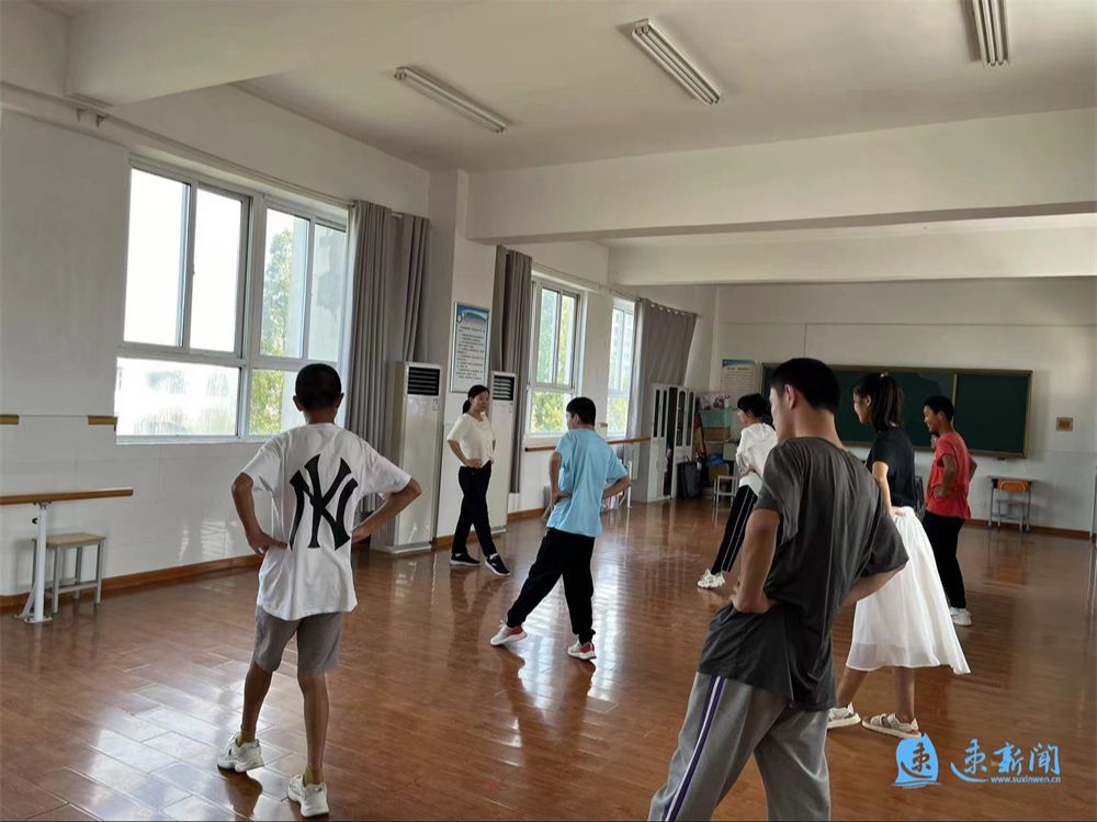 整齐的舞步、利落的动作、可爱的表情,9月9日,在宿城区启智学校的舞蹈教室,孩子们正认真地表演节目,精彩的表演给观众留下了深刻印象。在他们表演时,一位一直陪他们跳舞的老师吸引了记者的注意,她一直站在孩子们面前,用一个个舞蹈动作给孩子们准确示范。