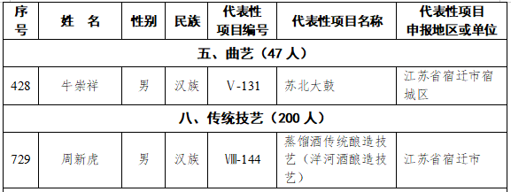 其中,宿迁市入选的非遗代表性传承人出自曲艺和传统技艺两大门类,具体为——