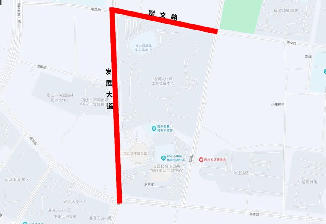 当宿迁梦之蓝·奥体中心、宿迁国际会展中心停车场停满后,将对崇文路(发展大道至三峰路段)、发展大道(奥体路至崇文路段)实行临时交通管制,除工作车辆外,社会车辆禁止通行。