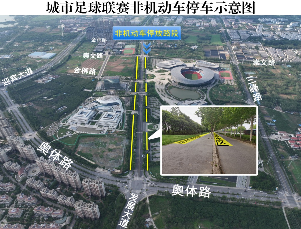 发展大道(奥体路至崇文路段),崇文路(发展大道至三峰路段)、奥体路(迎宾大道至三峰路段)、迎宾大道(全线)禁止车辆停放。