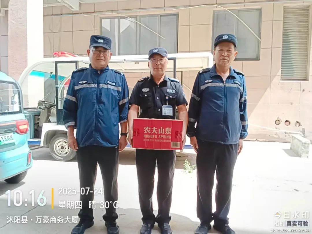 该公司作为国有安保企业,积极履行国企担当和社会责任,以“保一方平安、为人民服务”承诺,在服务经济社会发展、服务群众、服务治安防范工作等工作中作出了重要贡献。该公司领导在慰问过程中介绍了公司的发展历程与企业文化,加深了大家对公司的认识,增强了大家的职业荣誉感与企业归属感。同时,该公司领导还为大家普及了热射病,提醒大家注意防暑降温,对于队员日常工作、生活中遇到的困难表示了关心并提出了相应的建议。
