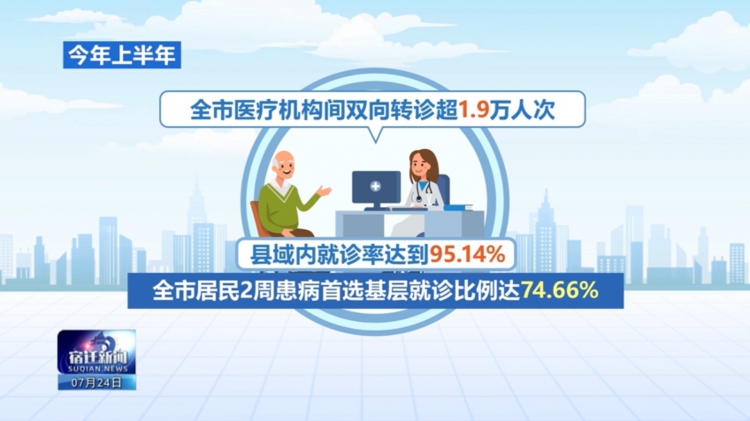医疗是民生之需,健康是幸福之基。今年以来,宿迁持续深化医药卫生体制改革,鼓励二级及以上医院与基层医疗机构建立联合体;积极争取省级支持政策,开展柔性引才,强化技术帮扶,74个专家工作室投入运行;加速国家区域医疗中心项目建设,多项技术填补区域空白。数据显示,今年上半年,全市居民2周患病首选基层就诊比例达74.66%;县域内就诊率达到95.14%;全市医疗机构间双向转诊超1.9万人次。从“看病难”到“方便看”,从“往外跑”到“家门口”,宿迁正用实实在在的改革成效,托起百姓稳稳的健康幸福。
