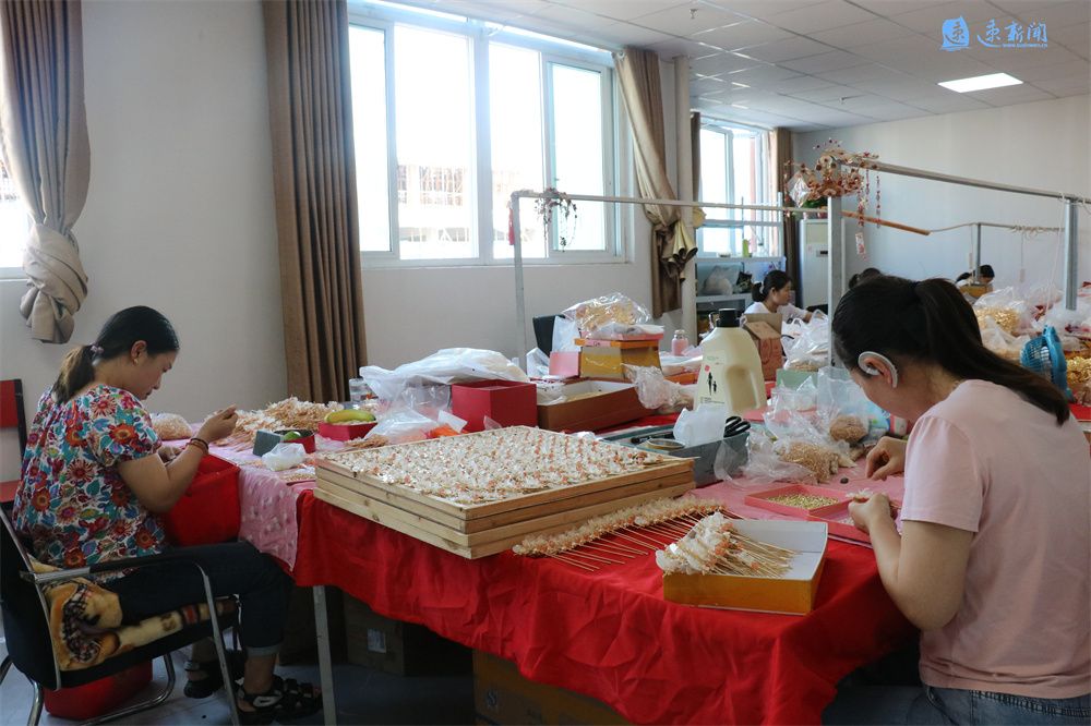 不久前,为了迎接七夕节前后结婚高峰期,加工点更是一片繁忙。“宝妈”们一边忙活一边笑谈:“每月赚三四千元,还能接送孩子,这样的工作去哪找?”近年来,盛世婚庆还设立托儿所,实行弹性工作机制,吸纳残障人士按件计酬,人均月收入超3500元。