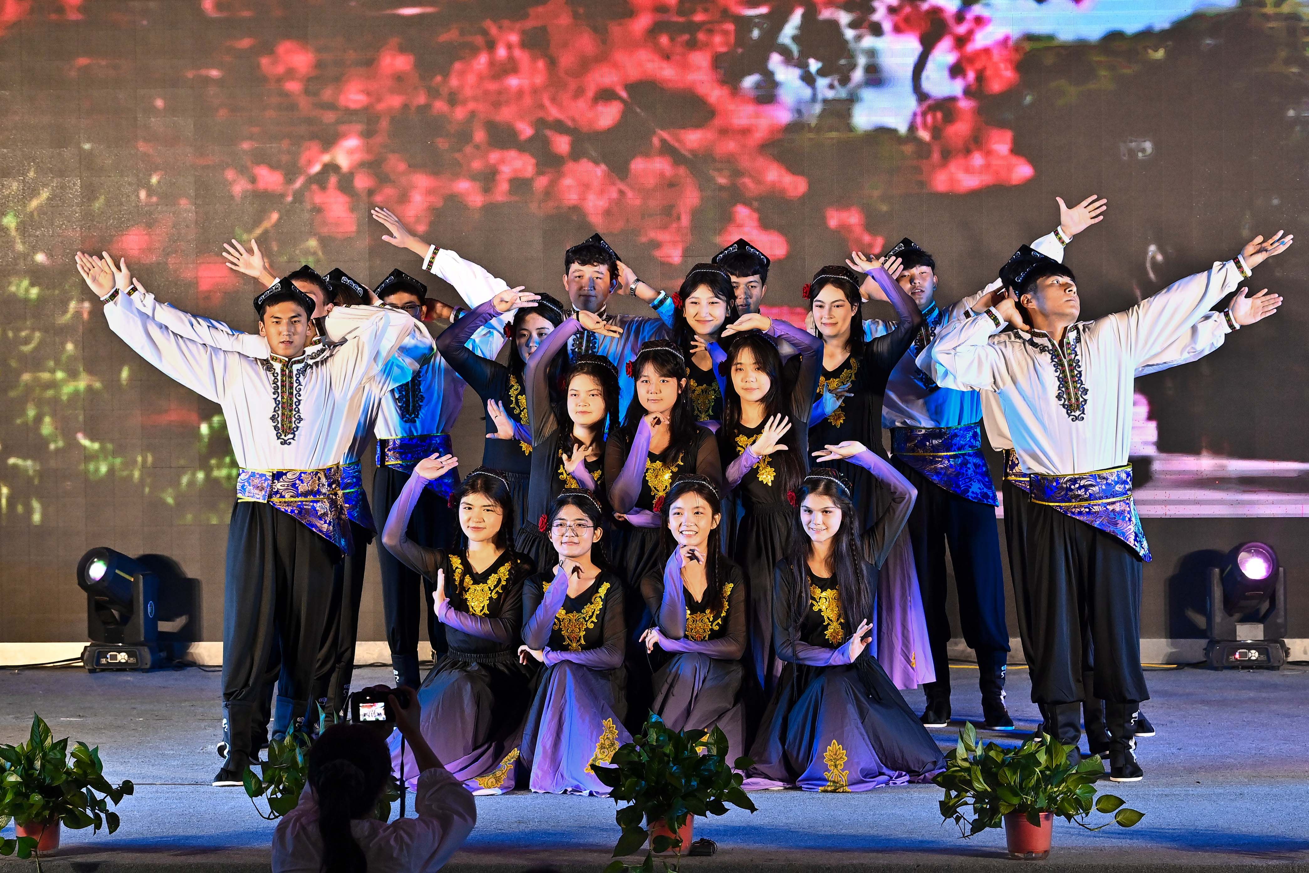 当晚8时许,活动在全体师生齐唱《歌唱祖国》的歌声中落下帷幕。“同心同脉石榴红,共舞共歌民族情;诗心永向党,共筑中国梦!”主持人的寄语回荡在宣德厅内,现场师生挥舞着小国旗,脸上洋溢着自豪与喜悦。此次活动不仅是一场文艺盛宴,更是一堂生动的爱国主义与民族团结教育课。“看到两校学子同台演出,我感受到了青年一代的担当。”张德超说,未来两校将继续探索校际合作新模式,为学子搭建更多文化交流平台,助力他们在传承中华民族传统文化中成长成才。