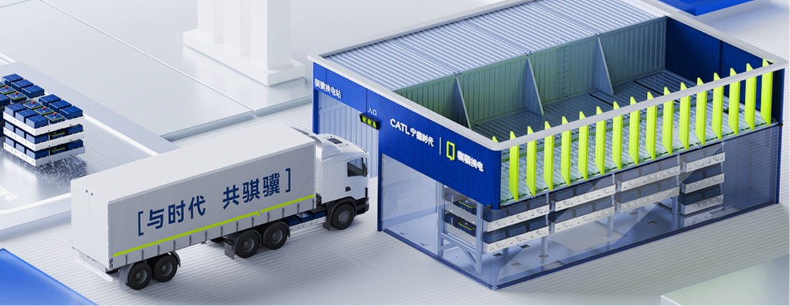 重型卡车作为公路货运的主力军,其绿色转型对实现“双碳”目标至关重要。通湖物流园敏锐把握市场需求与政策导向,经过充分调研与深入洽谈,成功携手宁德时代规划建设宁德时代骐骥换电站项目。项目位于宿迁经济技术开发区通湖物流园停车场内,总面积2000平方米,规划建设8个标准换电仓位,采用先进的底盘式换电技术,单次换电时间仅需5分钟,服务能力达到192次/天。