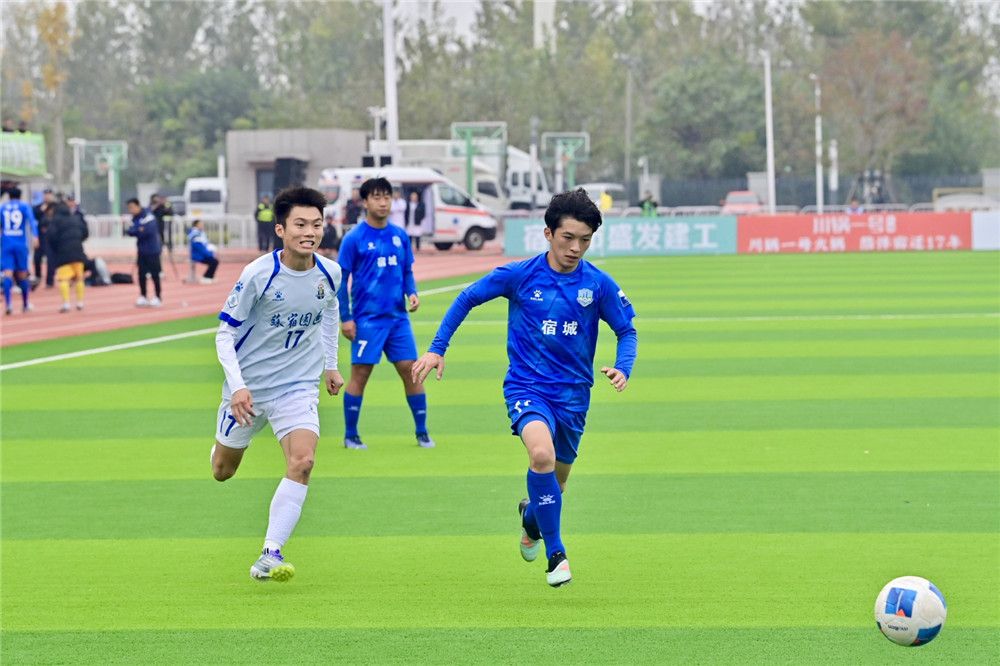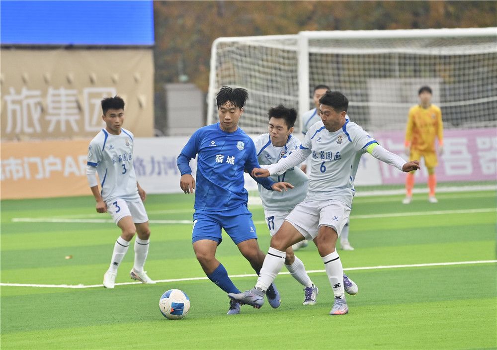 比赛第26分钟,宿城队接连发起进攻,最终41号球员臧昌隆成功破门,将比分改写为1:0。比赛第30分钟,宿城队8号球员卜飞扬接住队友臧昌隆的传球,一脚将足球送进球门,将场上比分改写为2:0。场上欢呼声还未落下,比赛第31分钟,卜飞扬又进一球,将优势扩大为3:0。比赛第42分钟,宿城队获得一次角球机会,宿城队37号球员仲义一个头球,直挂球门死角,将比分改写为4:0。