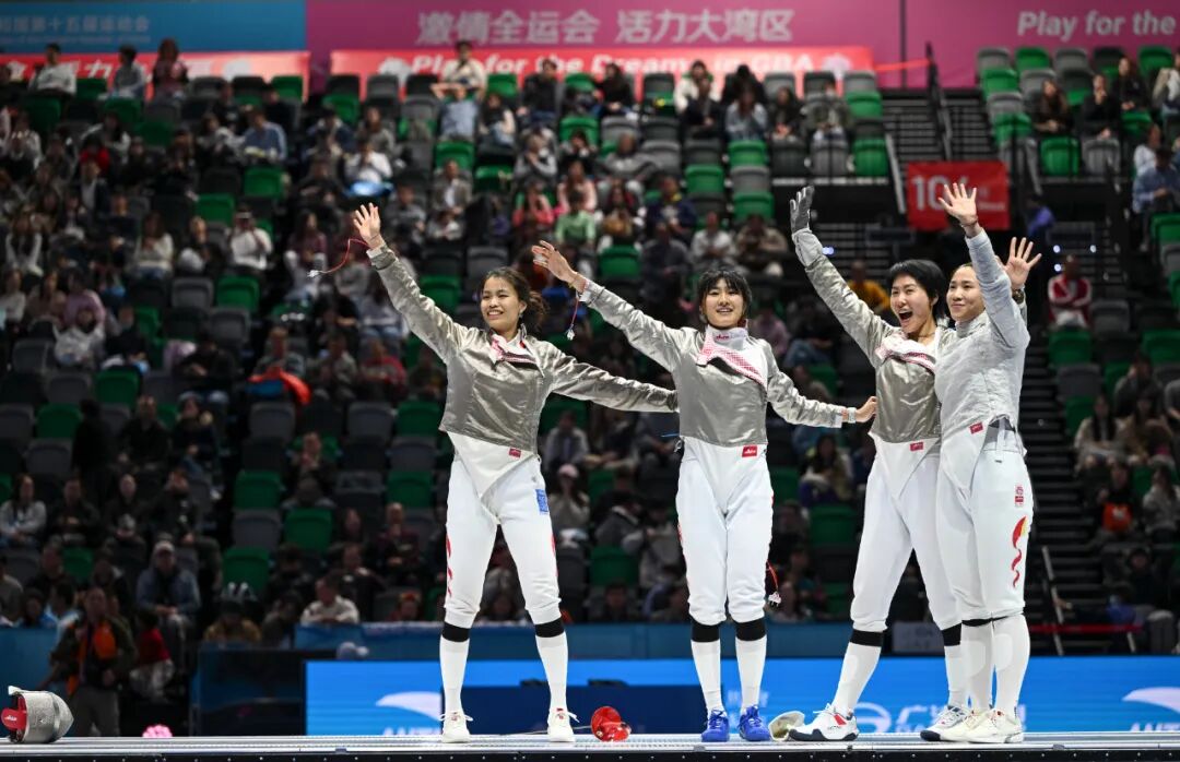 与队友傅颖、钱佳睿、杨恒郁携手出战