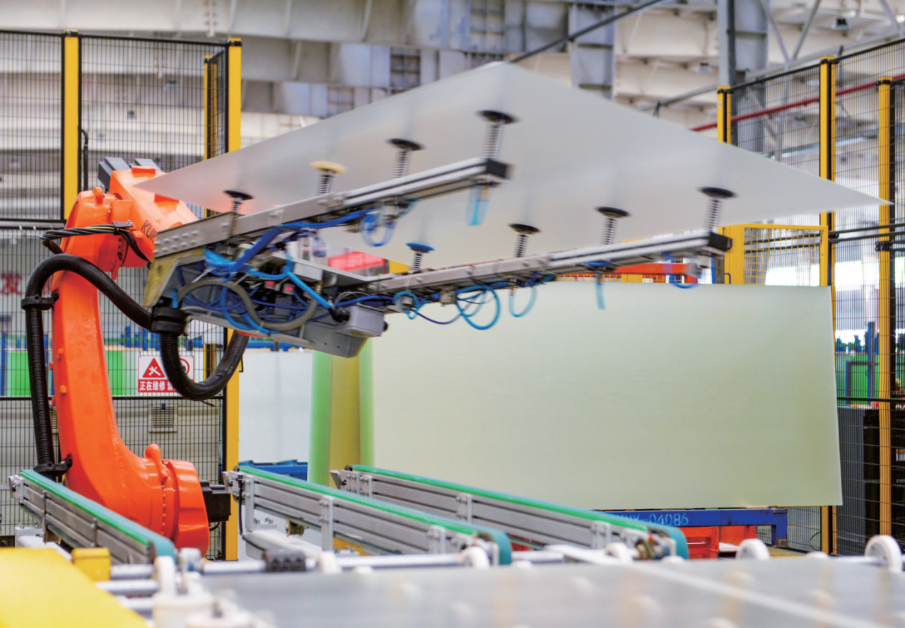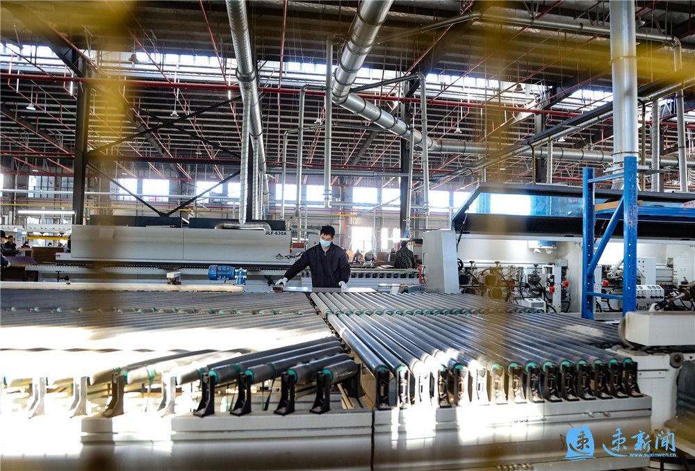 近日,记者走进位于宿城区的江苏凯盛新材料有限公司,只见生产车间内,智能化光伏玻璃生产线全速运转,数十只机械臂来回“舞动”。据了解,该企业采用先进的深加工全联线技术,实现从订单接收到产品出库全程数字化生产管理,未来还将建设4条超薄光伏封装玻璃生产线、24条深加工生产线,待全部投产后,可年产150万吨超白超薄光伏玻璃。