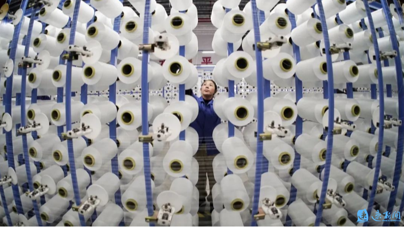 而在泗阳县江苏芮邦科技有限公司,则是另一番围绕“废品再生”展开的忙碌场景:废弃塑料瓶在生产线上经过筛选处理后,被切成纽扣大小,再经过拉丝、并丝等工序成为生产涤纶长丝的原料。据了解,该企业再生聚酯纤维生产线年产能50万吨,可消耗废弃塑料瓶300多亿个,减少碳排放近120万吨。