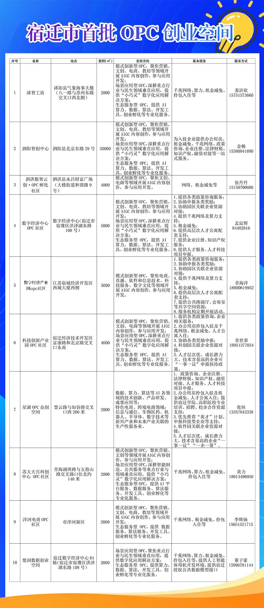 10. 通过“宿企通”平台开设OPC专栏,提供政策查询、业务办理、诉求反馈功能,建立OPC创业者常态化沟通机制,常态化收集诉求,第一时间响应解决。