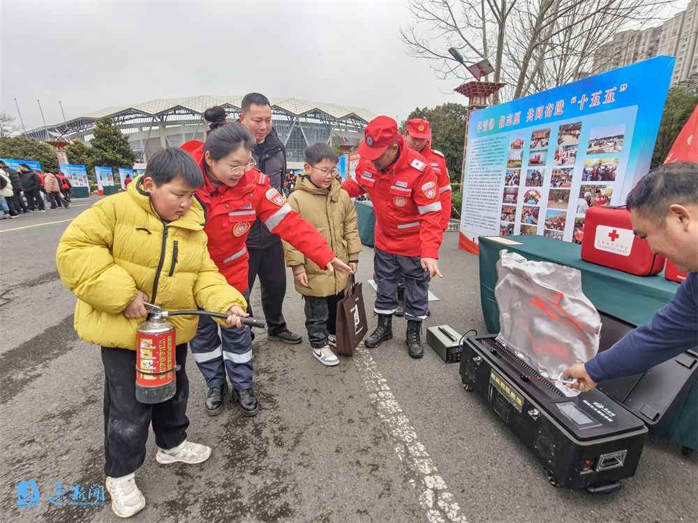 志愿者为现场群众讲解灭火器使用方法