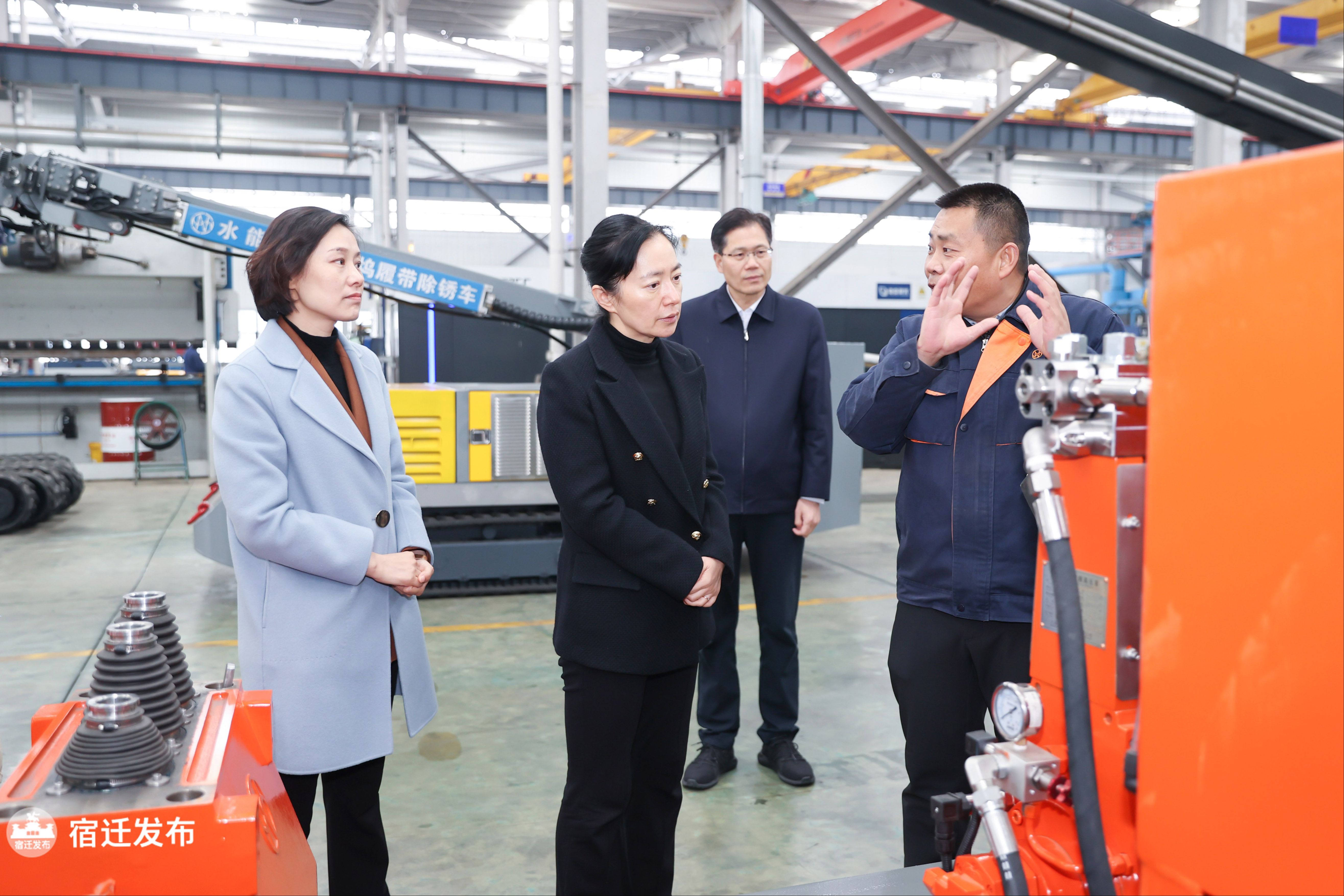 在宿迁江松科技有限公司和江苏水能金属科技有限公司,盛蕾就行业发展趋势、企业在手订单、供应链合作等情况与企业负责人深入交流。她勉励企业坚持既卖技能又卖服务,深挖存量市场,在小场景应用上创新发力,推进制造业与服务业深度融合、协同发展。希望企业积极发挥“以商引商”桥梁纽带作用,吸引更多产业质态优、适配度高的上下游企业落户宿迁,加快形成配套集聚效应,助力提升产业链供应链韧性水平。