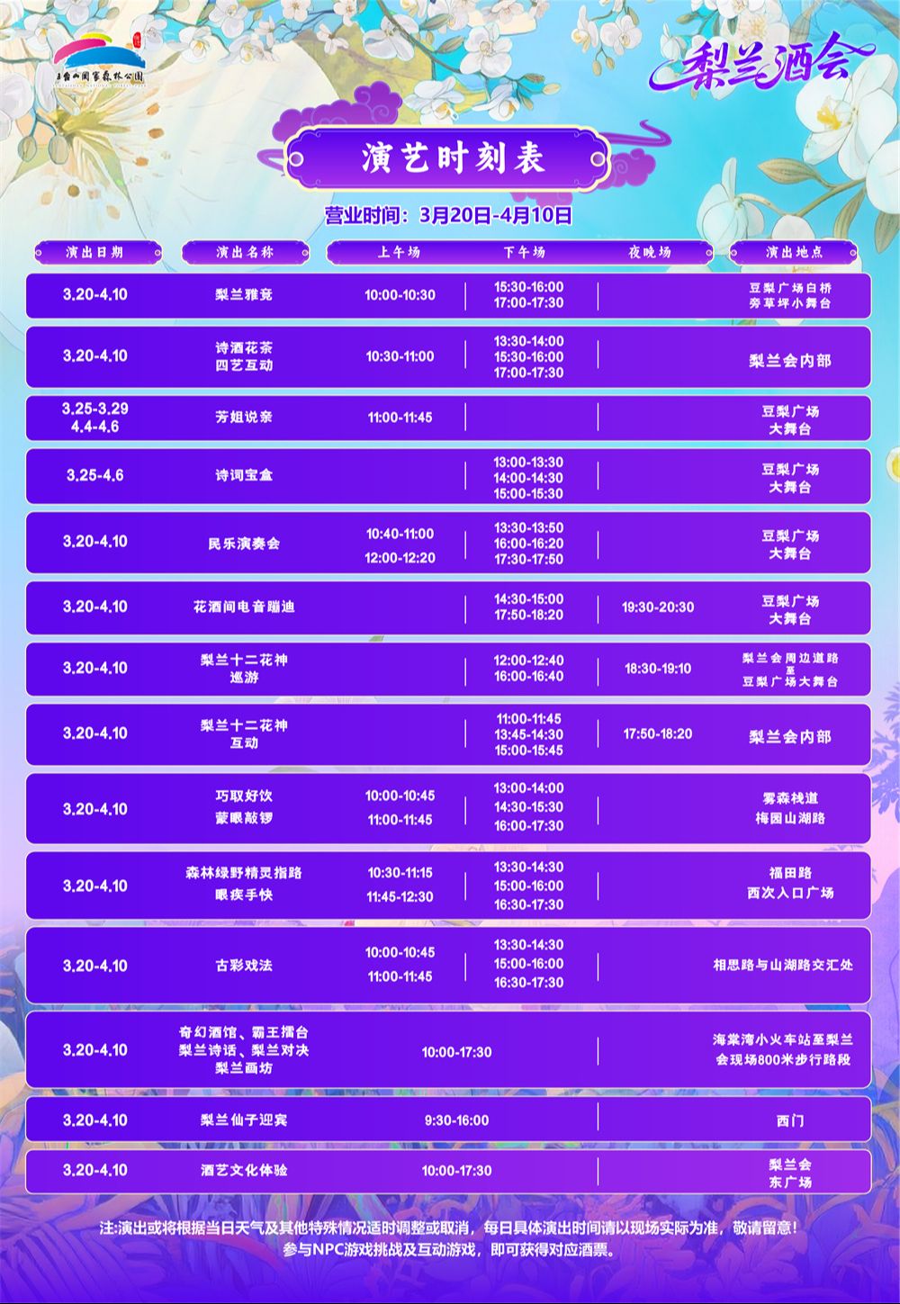 本届三台山梨兰酒会将持续至4月10日,在此期间,景区每日营业时间延长至晚上9点30分,同步推出夜游光影秀、花间市集、国风乐队演出等演艺节目,满足游客白日赏花、夜晚休闲的多元需求。想要踏青赏花、感受春日浪漫、体验宿迁特色酒文化的游客,可趁着融融春光前往打卡,定格专属春日美好,邂逅三台山的诗意与惬意。